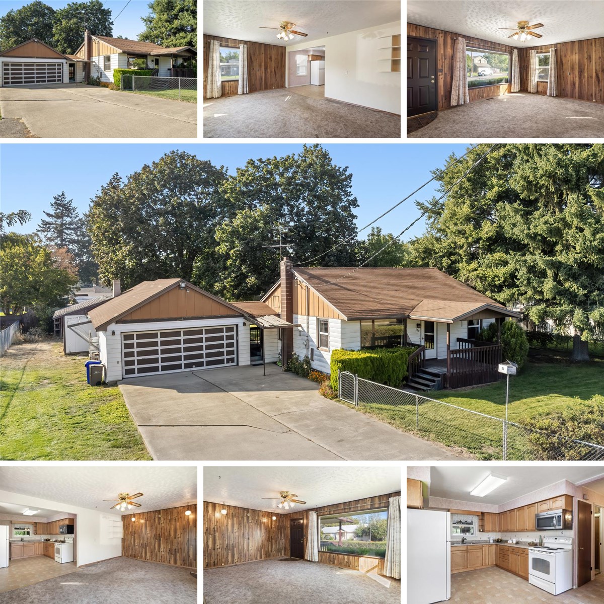Welcome to this charming Spokane Valley home with incredible potential and decades of single-owner care. This 4-bedroom, 1-bathroom residence offers 1,680 square feet of living space on an expansive 15,000 square foot lot. Some thoughtful updates have been completed including a refreshed kitchen, energy-efficient vinyl windows, and a new AC unit. The gas furnace provides reliable heating, while beautiful wood floors add character throughout portions of the home. The fully fenced property features a spacious backyard perfect for outdoor activities and relaxation. A covered patio provides an ideal spot for barbeques and gatherings with family and friends. The oversized garage includes an attached shop area equipped with 220 power and abundant storage space, perfect for hobbyists or craftsmen needing extra workspace. This property combines classic charm with room to add your personal touches and vision, offering endless possibilities for making it your own.