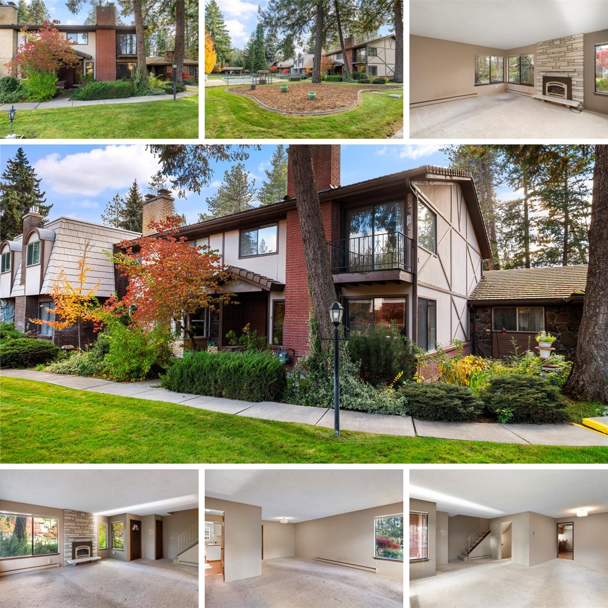 Opportunity abounds in this fabulous North Spokane condo! Live the carefree lifestyle of your dreams in gated Carriage Square with 110 acres of wilderness + trails right outside your door + virtually zero exterior maintenance. Featuring all the vintage charm of 1970, the condo is perfectly livable as-is, or see it as a blank slate of endless possibilities. The bones are solid, the views are exceptional, the setting is private + quiet, and the location is convenient to shopping, restaurants and other amenities. Outside your front door, you'll enjoy beautiful landscaped grounds and a community pool in a secure central common area, and out the back door there is a private gated courtyard and detached 2-car garage. This condo represents an AMAZING value at this price!