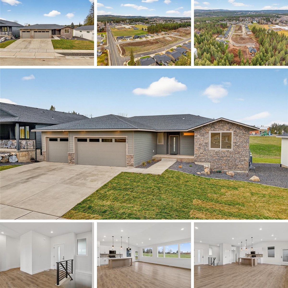 Welcome to this stunning new construction home in the highly sought-after Mead School District, conveniently located near Midway Elementary. This exceptional 5-bedroom, 3-bath residence offers 3,002 square feet of thoughtfully designed living space on a generous quarter-acre lot. The open floor plan seamlessly connects the modern kitchen, featuring a large quartz island and countertops, to the inviting great room with a warm gas fireplace, creating the perfect gathering space for family and friends. The finished basement features impressive 12-foot ceilings, adding remarkable volume and versatility. Step outside to your private oasis featuring a large covered deck with composite decking that overlooks a beautifully landscaped, level backyard complete with sprinkler system. Additionally includes a rare 4-car garage, efficient gas furnace with central A/C, and quality finishes throughout. This move-in ready home combines exceptional construction, prime location and outstanding value.