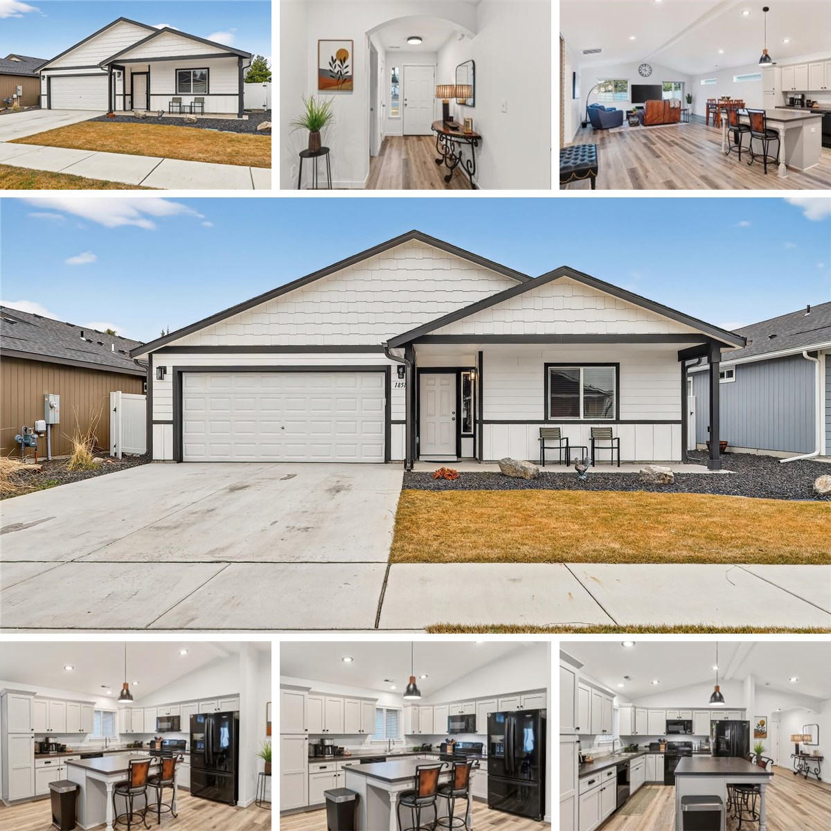 Greenacres Is The Place To Be! Two-years new and loaded with upgrades, this beautiful 3-bedroom, 2-bath rancher offers comfort, efficiency, and style. Located near Liberty Lake with an easy commute to Spokane and Coeur d’Alene, the open-concept layout features cathedral ceilings, LVP flooring, and stunning shaker cabinets throughout. The spacious kitchen boasts a large island perfect for entertaining. The primary suite includes a generous walk-in closet and a full bath with double sinks and a 5’ fiberglass shower. Enjoy energy efficiency with a 95% gas furnace and programmable thermostat. Exterior highlights include hardboard siding, front yard landscaping with sprinklers, new white vinyl fencing, air conditioning, and no-step entry at all entrances. Relax on the 26x10 covered rear patio or the covered front patio. Deep 2-car garage with insulated door completes this must-see home.