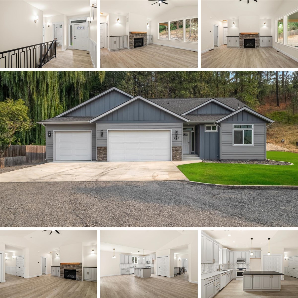 Stunningrancher on a ½ acre lot, just a stone’s throw fromLake Spokane/Long Lakewithexclusive Lakeridge Park membershipforboating and private lake access! Built by renowned builderMike Miller, this thoughtfully designed home features amain-level layout with 3 bedrooms, 2 bathrooms, and high-end designer finishes throughout — including stylishblack and gold hardware,shaker cabinetry, andquartz countertops. Enjoy the spacious, open-concept living area withCafe Series appliances,wide plank LVP flooring,wood-wrapped windows, and a strikingvertical wainscot entry wall. The modernopen stair railleads to a largeunfinished basement w/ potential for more bedrooms, bathroom and a family room. Stay comfortable year-round with agas furnace and heat pump. Take advantage of theoversized 3-car garage, complete with adeep 3rd bayand10' wide door-perfect for trucks, toys, or a workshop. Relax or entertain on the21x15 covered deck, surrounded bynatural privacy and mature trees.