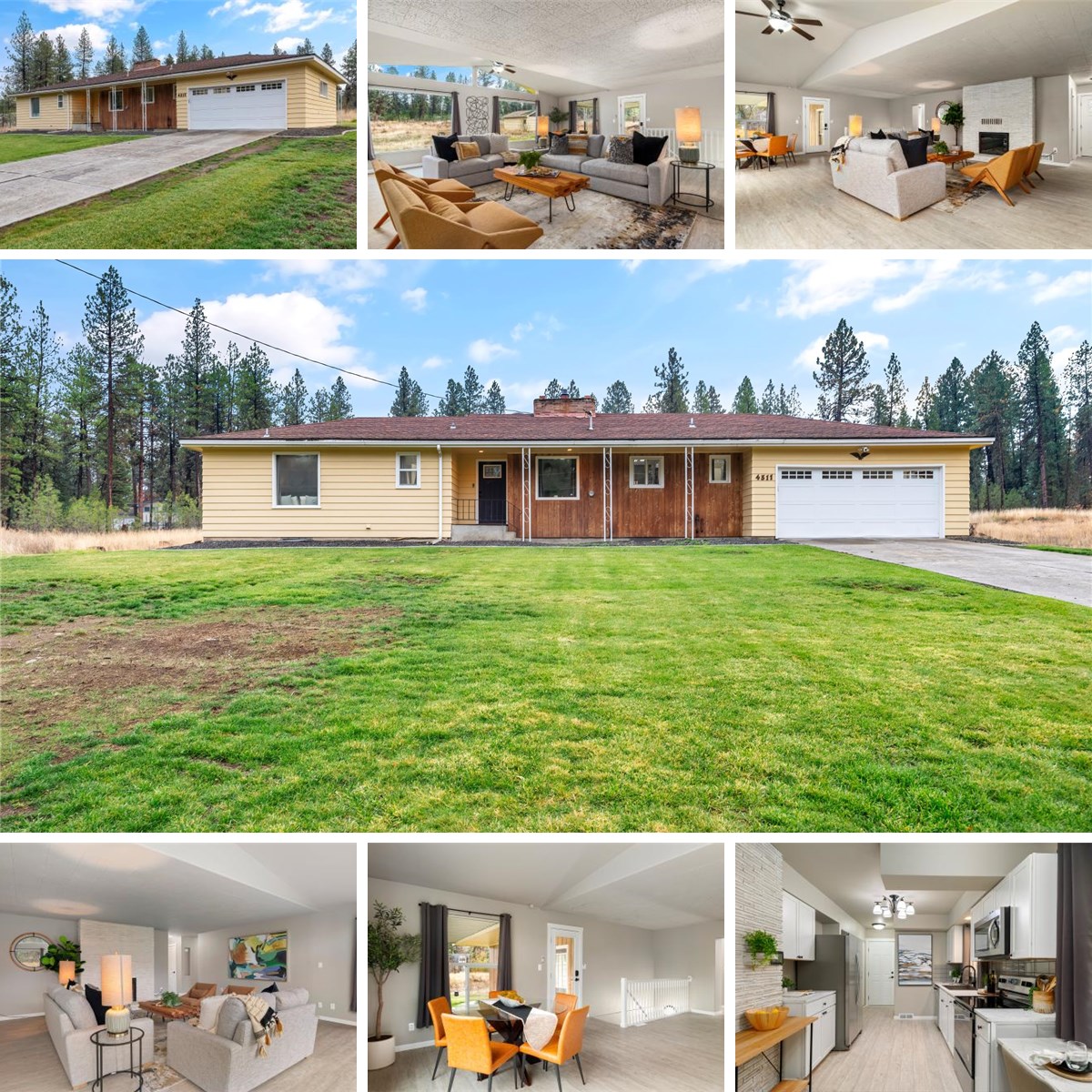 You are sure to fall in love with the spacious open floor plan and recent renovations in this beautiful mid-century rancher. The home was fully remodeled in 2021 to include new heating and cooling systems, new garage door, new cabinets, counters, flooring, paint, lighting and appliances. The property features concrete edging, a 5-zone irrigation system, and it was recently connected to public sewer. Located just minutes from downtown Spokane, Spokane International Airport, Fairchild AFB, the Amazon Distribution Center and Northern Quest Casino, this spacious rancher on a .6 acre lot offers both privacy and convenience.